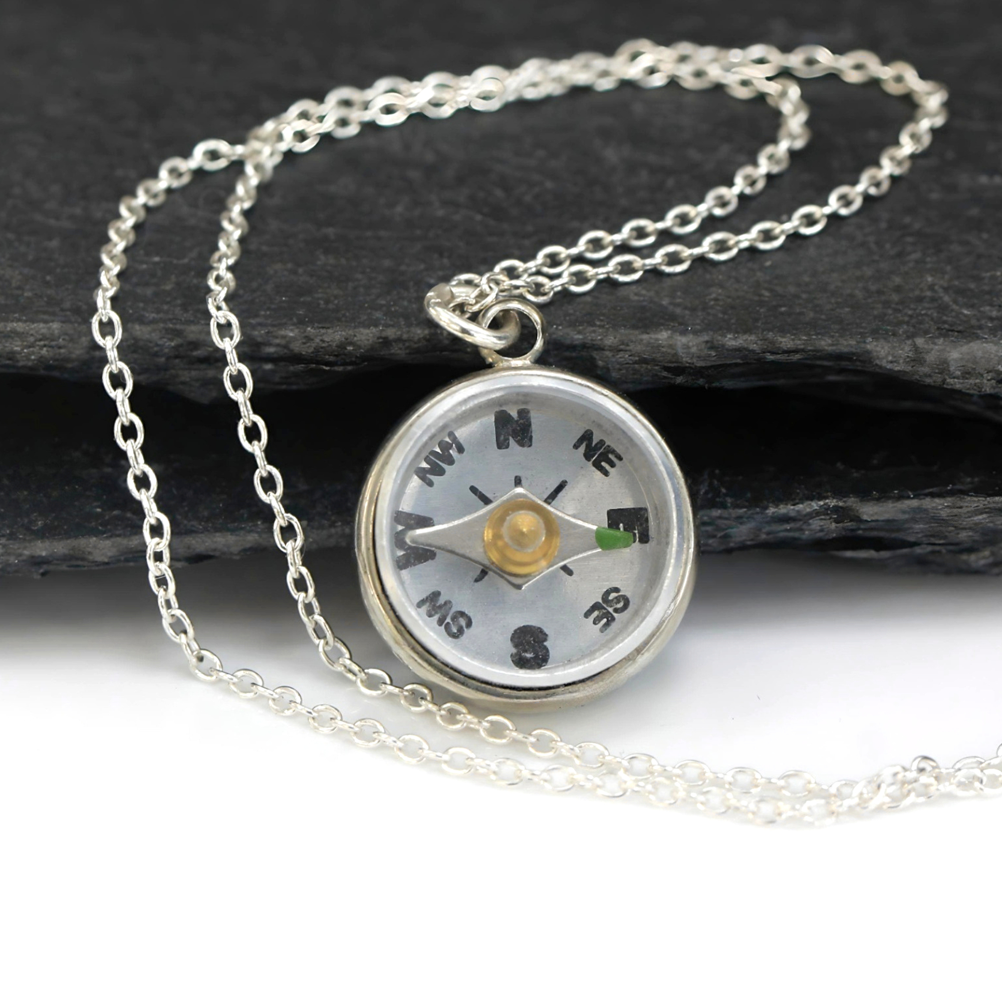 Dainty working compass necklace. 925 Sterling Silver
