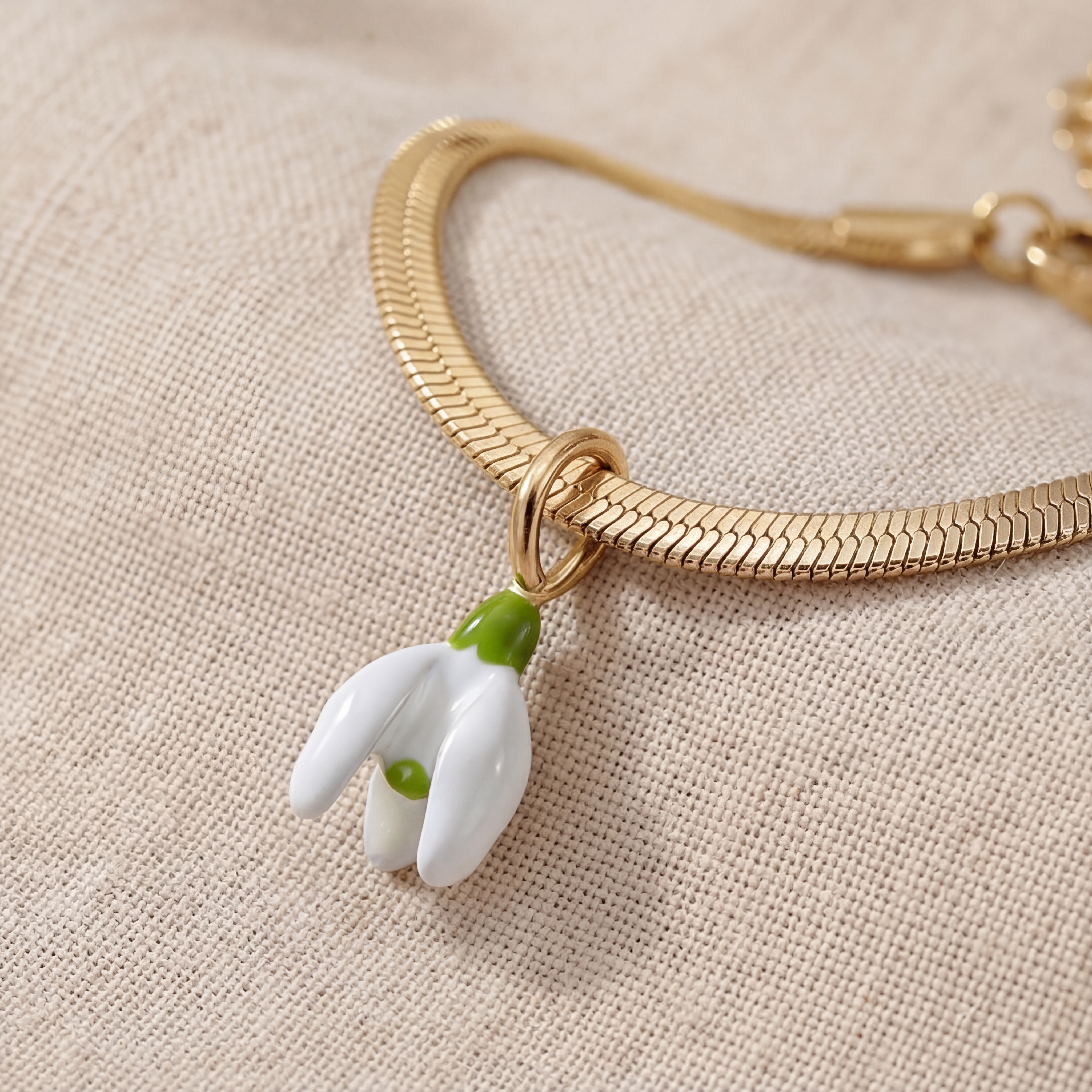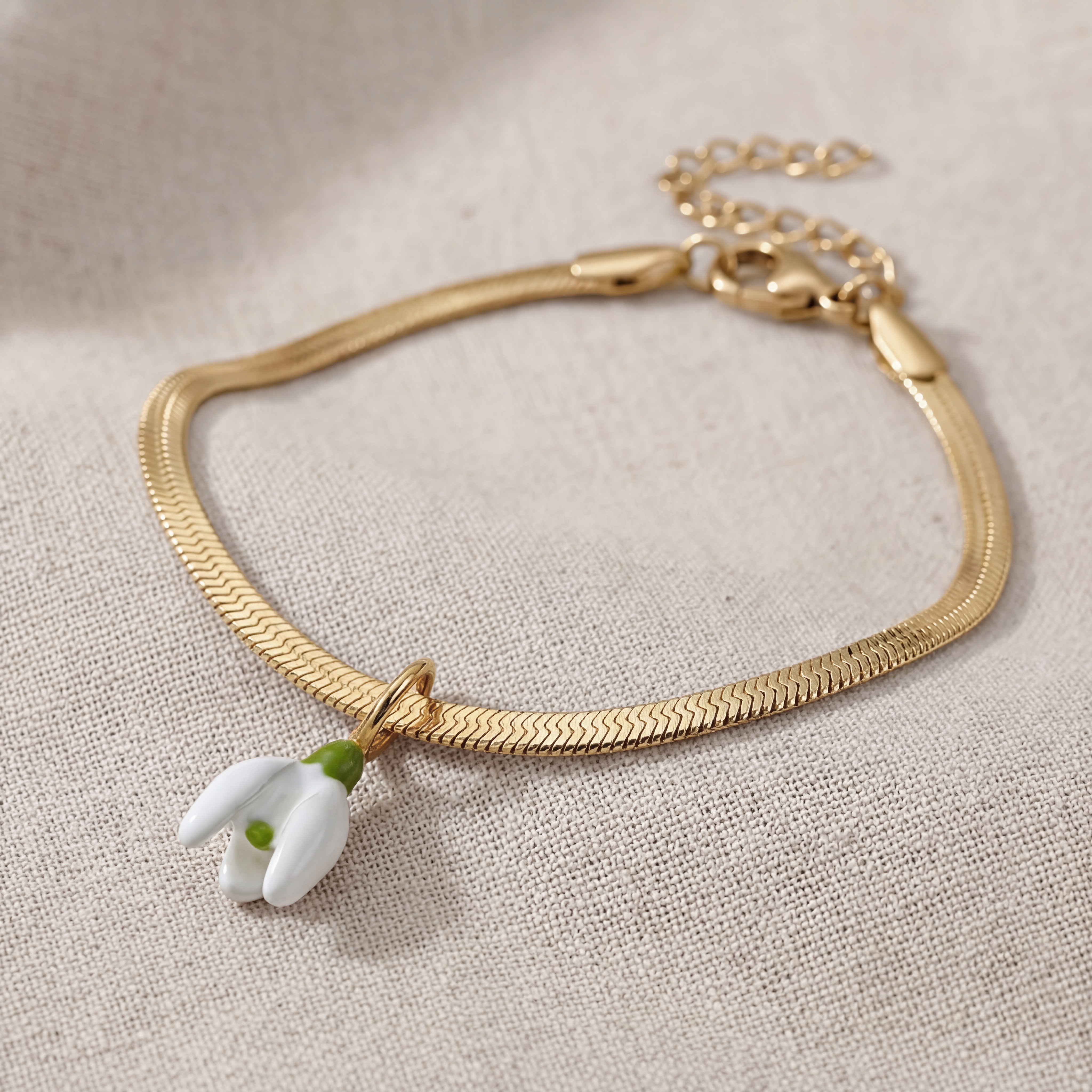 Snowdrop Bracelet. Never Fades. 18k Gold Plated and White & Green Enamel