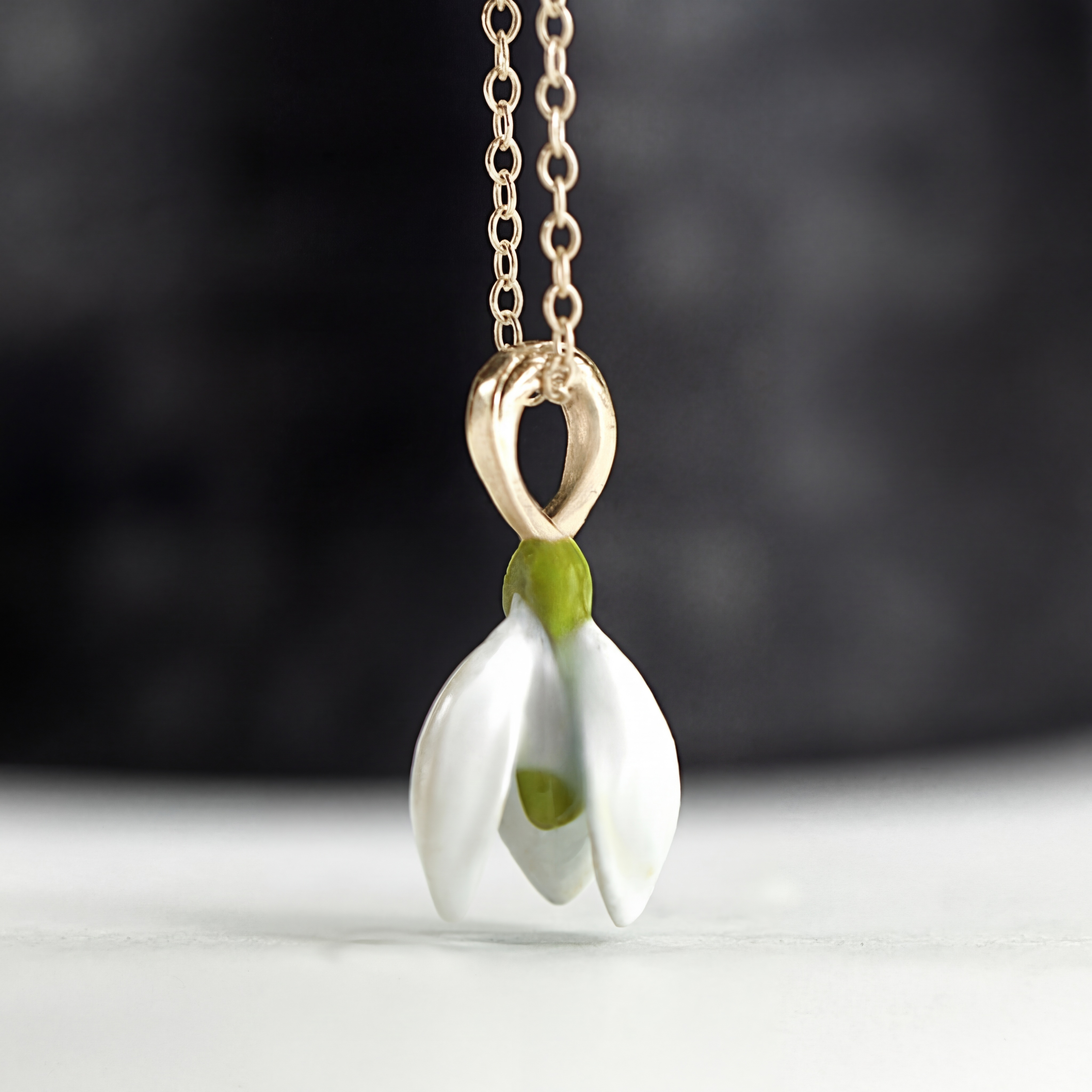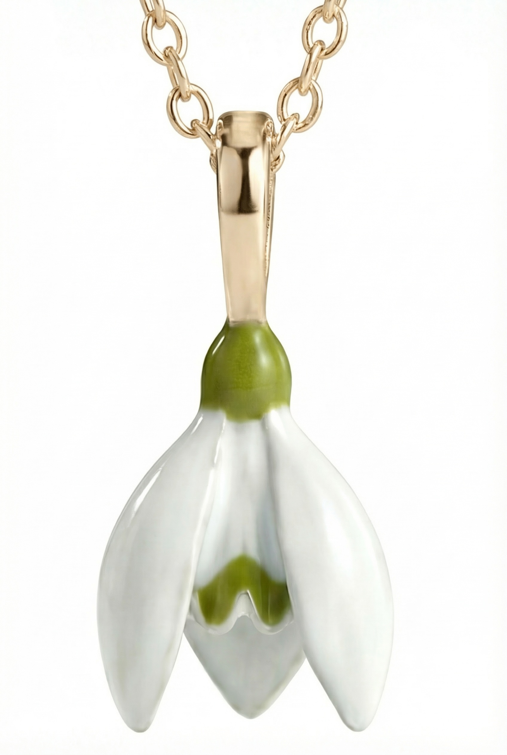 Snowdrop necklace. Enamel. Sterling Silver gold plated or stainless steel gold plated